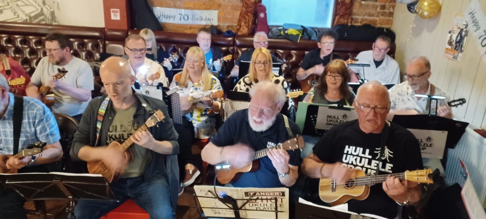 The rumours about our demise are untrue. We meet once a week either a Monday or Wednesday and we have been playing live throughout the summer of 2022. We have, (at the most), over 20 players and regularly get 12 players for a night of tunes and ukulele chat.